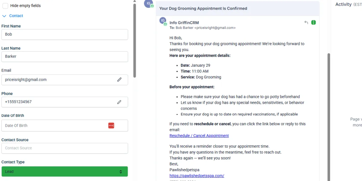 Their information is saved instantly, and they receive an automatic confirmation message.